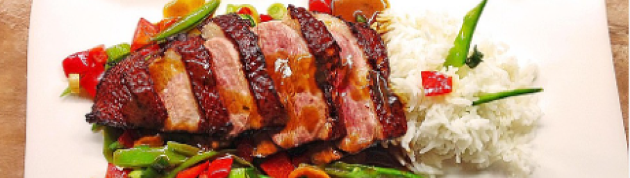 Hähnchenfleisch am Spieß gegrillt mit Salat und Erdnusssauce